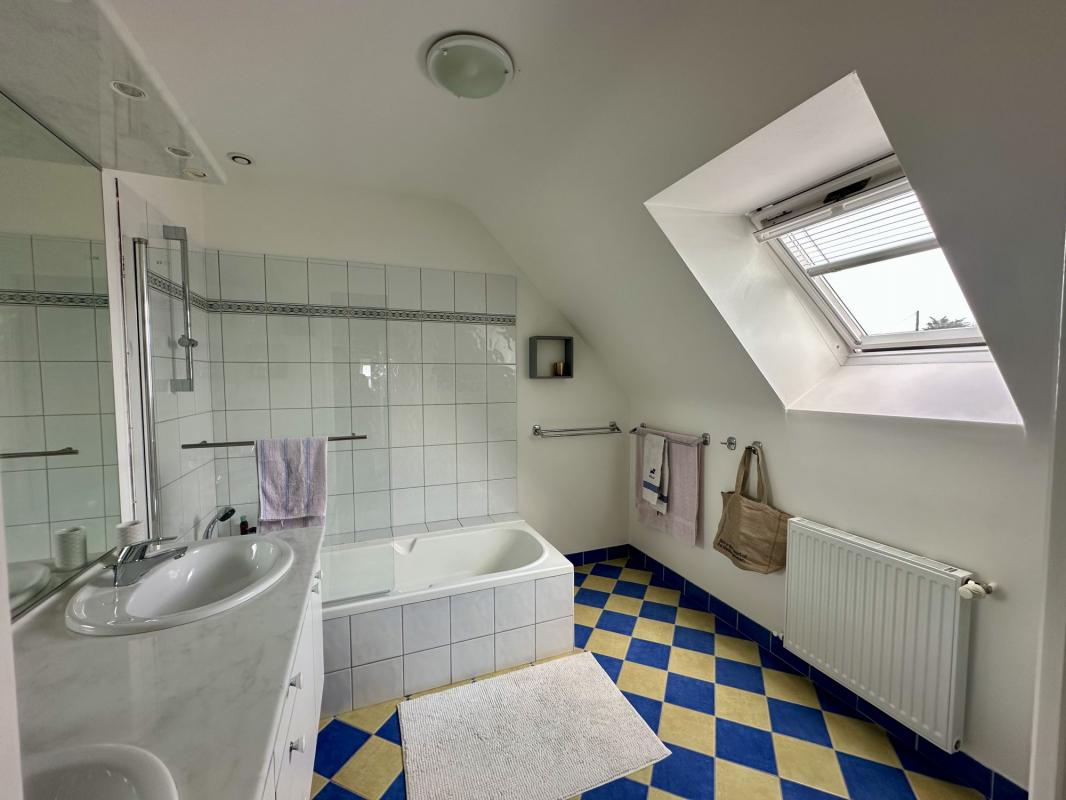 A l’étage, un dégagement, trois chambres, un bureau, une salle de bain avec WC et un grenier aménageable.