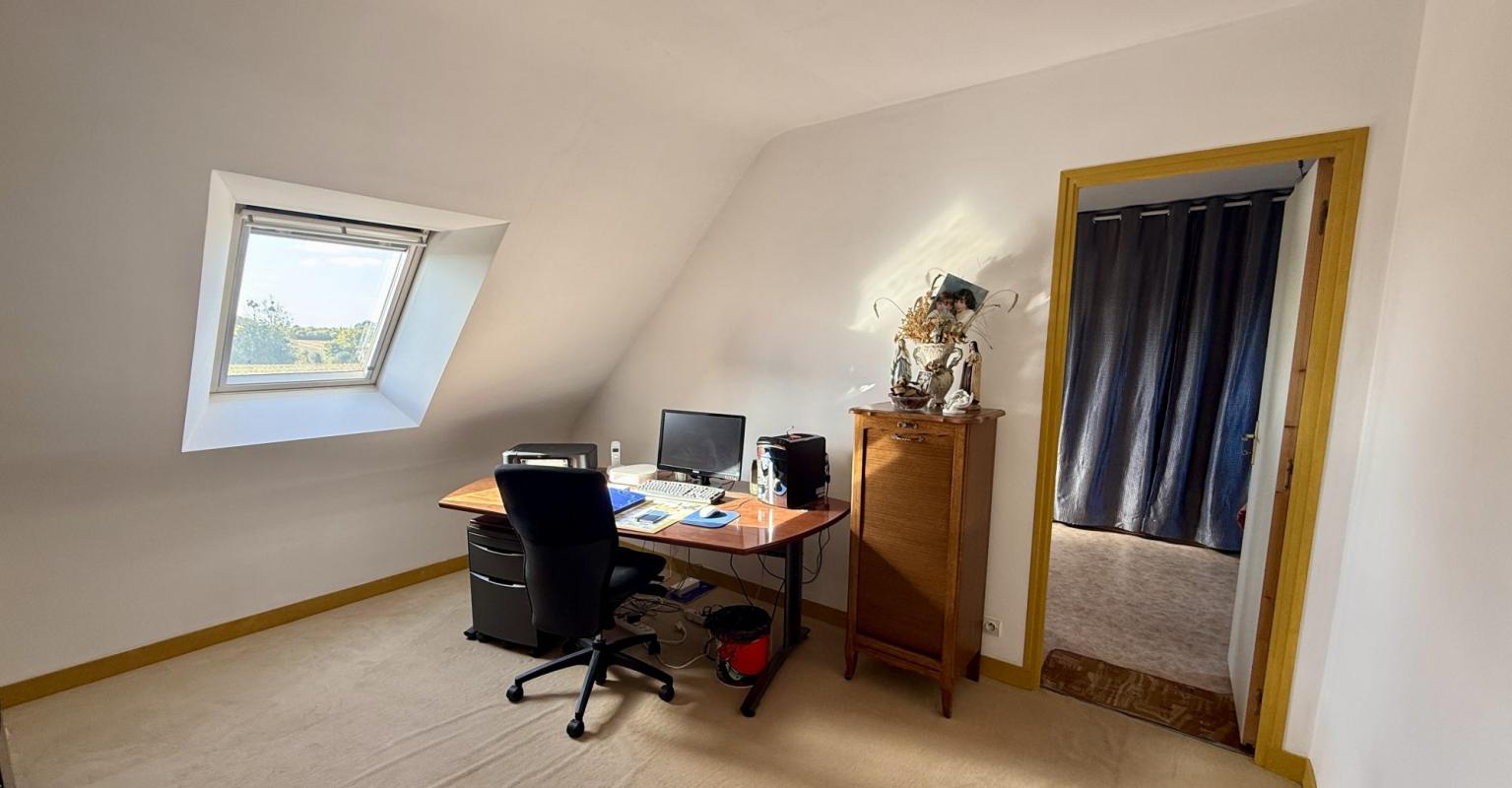 Au 1er étage, un dégagement dessert 3 chambres dont deux avec placards, une salle de bain et un W.C. indépendant. Une pièce en enfilade, lumineuse, bien isolée non chauffé, idéale pour du rangement, un grand dressing ou un atelier.