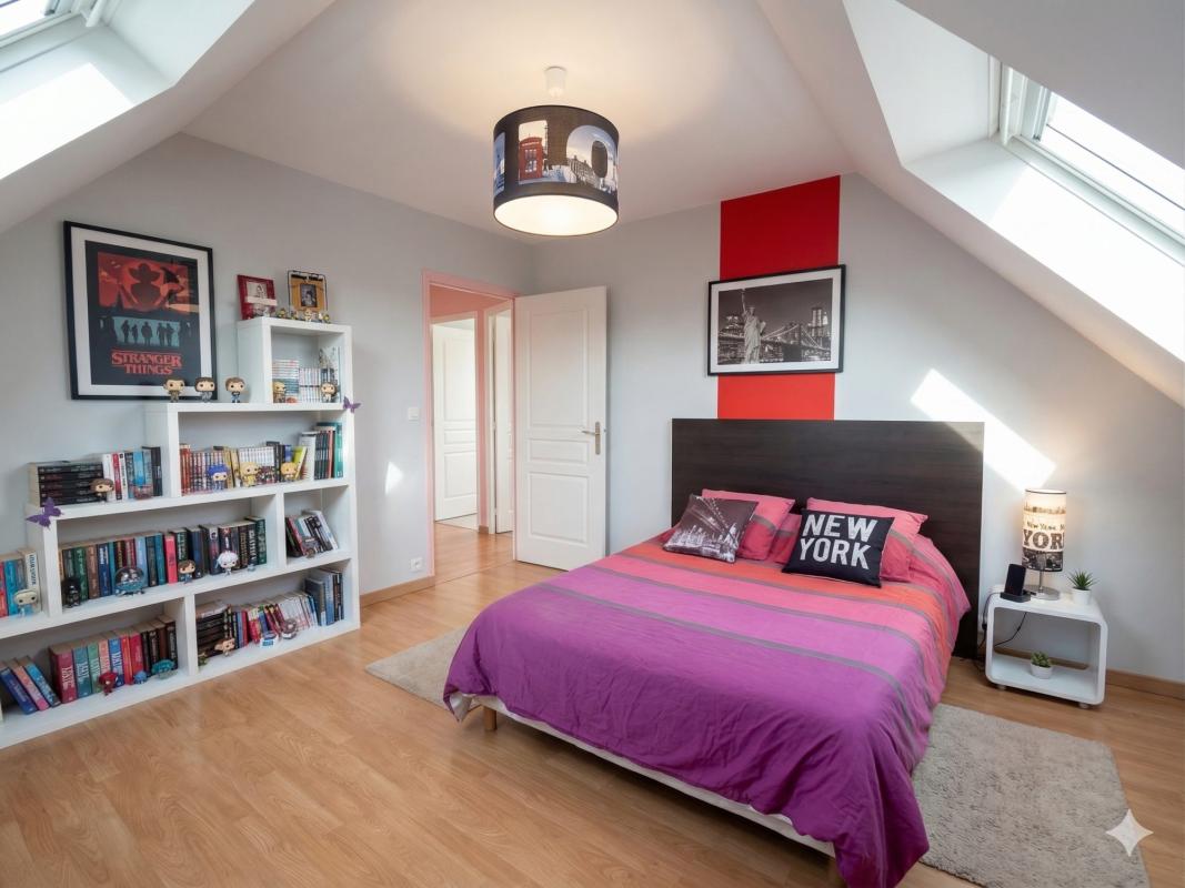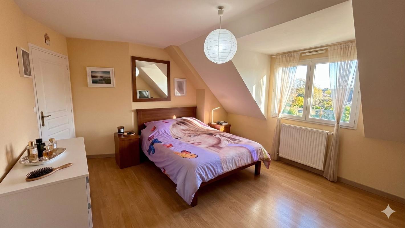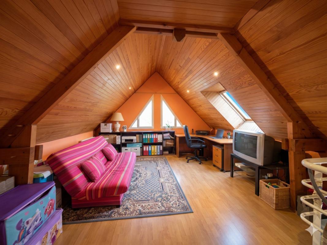 À l’étage, quatre chambres spacieuses vous attendent, chacune baignée de lumière naturelle. Une salle de bains et un second WC complètent cet espace dédié à la détente et au repos. Imaginez les soirées d’hiver au coin du feu, ou les matins d’été où les oiseaux chantent dans votre jardin de 1100 m², véritable havre de paix où vos enfants pourront jouer en toute sécurité.