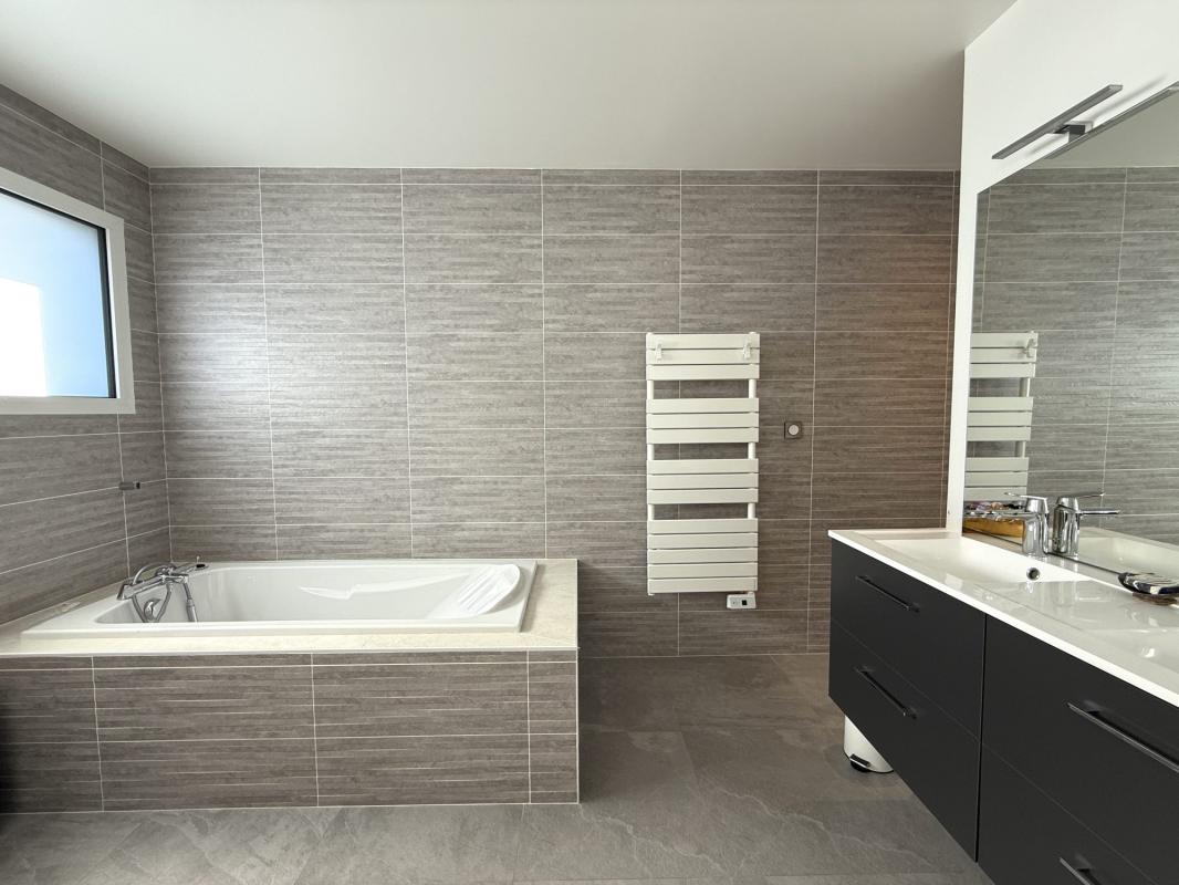 À Cesson-Sévigné (Rennes Métropole), découvrez cette maison contemporaine de 2018, développant 208 m² habitables, avec 5 chambres, sauna, jacuzzi et garage.