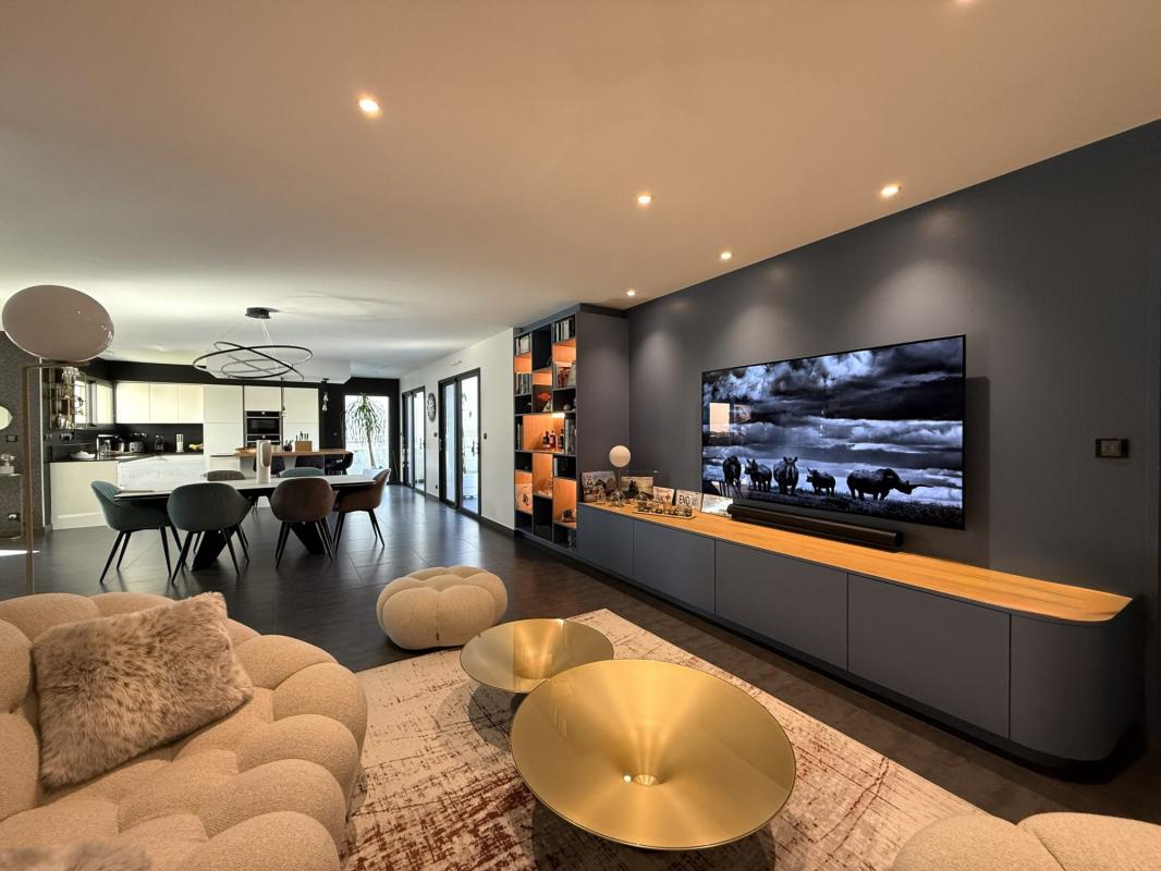 Pièce de vie lumineuse et traversante avec prestations sur mesure