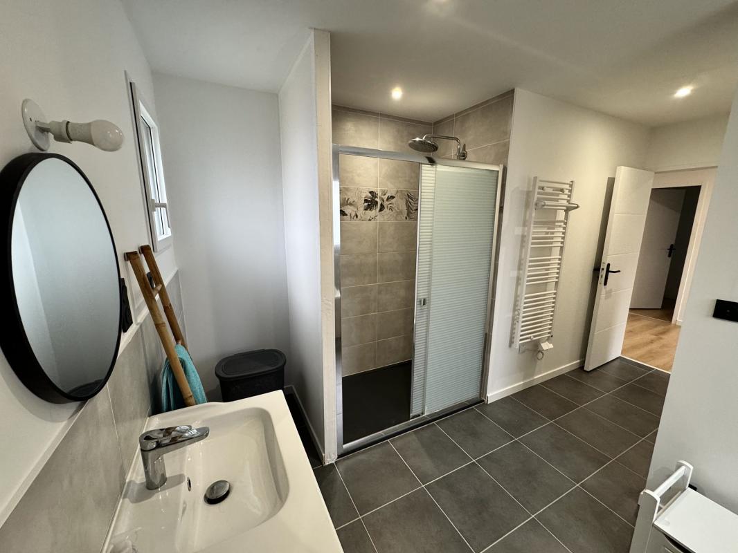 Suite parentale avec salle d’eau privative (douche à l’italienne, lave-mains, porte-serviettes)