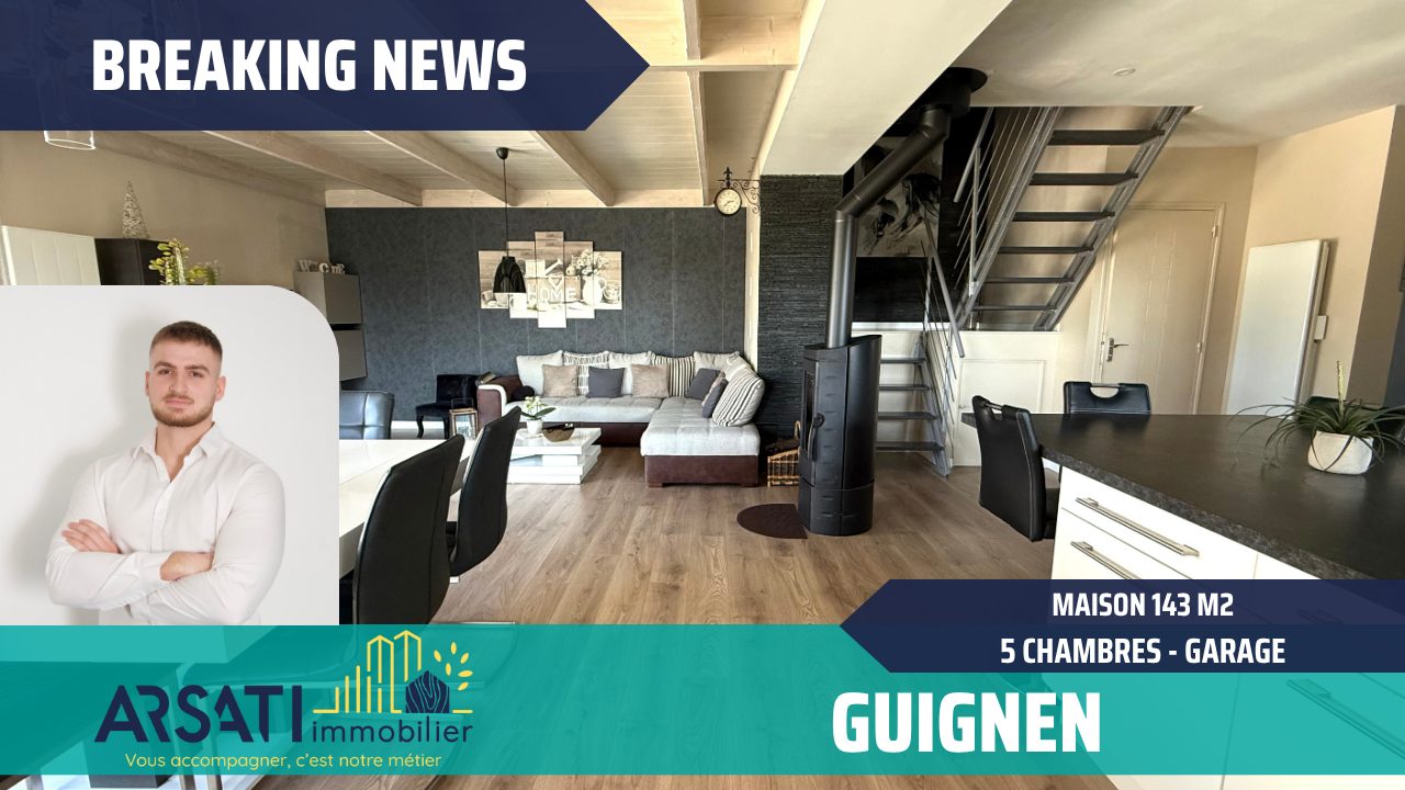 NOUVEAUTÉ – L’AGENCE ARSATI IMMOBILIER VOUS PROPOSE EN EXCLUSIVITÉ AMANDA CETTE BELLE MAISON DE 143m² HABITABLE – 5 CHAMBRES – GARAGE – SUR LA COMMUNE DE GUIGNEN.