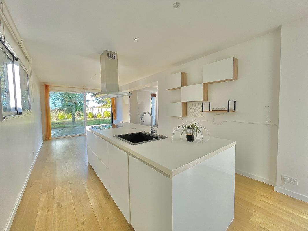 Elle se compose au rez de chaussée d’une entrée avec placard, une pièce de vie exposée OUEST de 55 m², une cuisine équipée et aménagée, une arrière cuisine, une suite parentale avec sa salle d’eau privative et espace dressing, et enfin un wc indépendant .