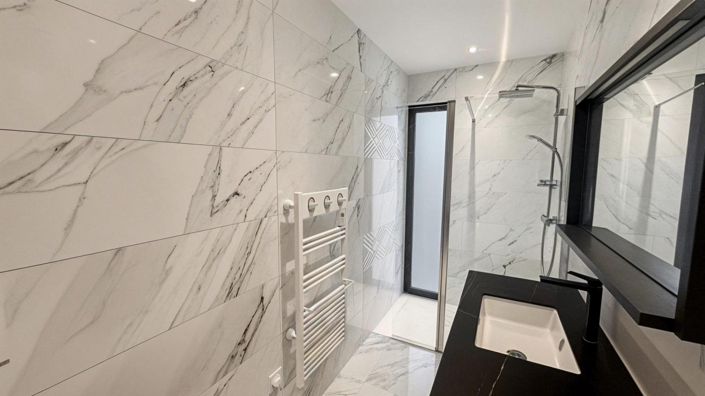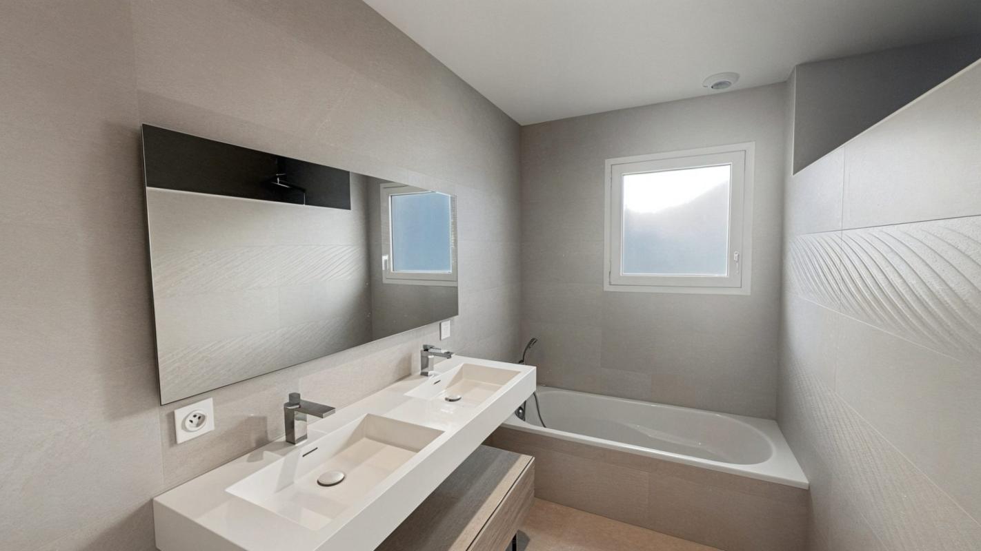 Vous y trouverez également un WC indépendant, un grand placard, une spacieuse suite parentale avec salle d’eau privative d’environ 22 m², ainsi qu’un garage d’environ 19 m².