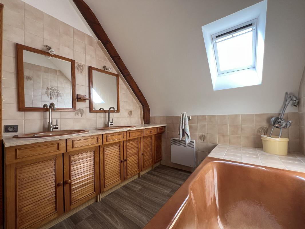 À l’étage, un dégagement dessert 3 chambres, un bureau, une salle de bains et un WC indépendant.