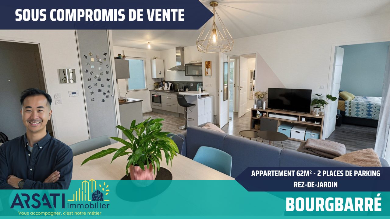 NOUVEAUTÉ EN EXCLUSIVITÉ – ARSATI IMMOBILIERAPPARTEMENT DE 62 M² – T3 – BOURGBARRÉ – JARDIN – 2 PLACES DE PARKING