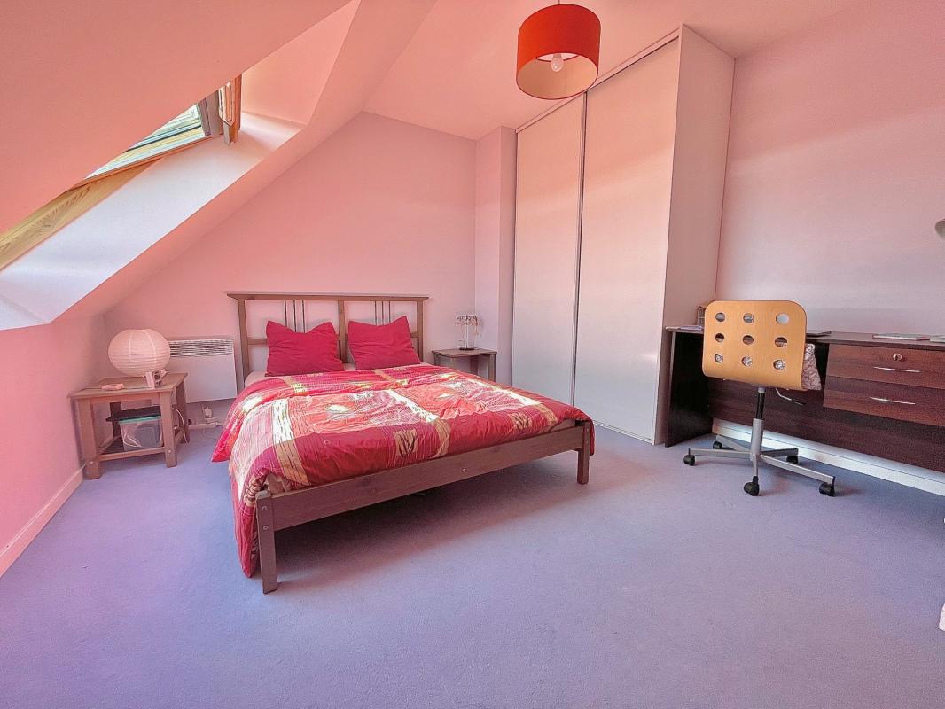 A l’étage, nous allons pouvoir découvrir un dégagement, trois grandes chambres dont deux avec dressing et une salle de bains.