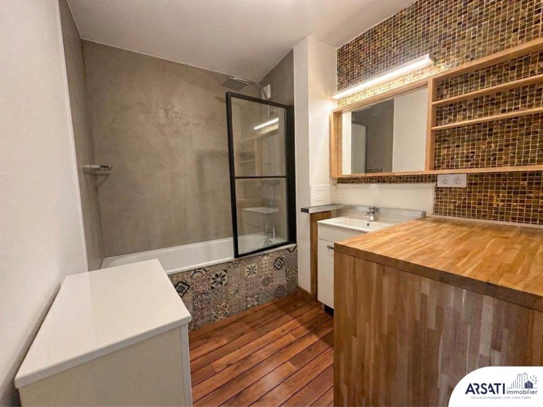 Une salle de bain ainsi que des WC séparés complètent l’ensemble.